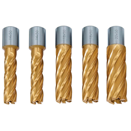 HSS CDL Kernbohrer, Zinn, 14/18/22 mm, Bohrtiefe 50 mm, 5-teilig