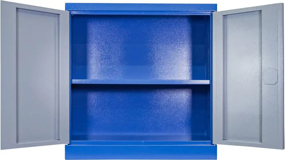 L’armadio porta attrezzi Guede TYPE B1 è una soluzione compatta e robusta per l’organizzazione sicura di utensili e materiali in officine, garage e ambienti di lavoro con spazi ridotti. Realizzato con struttura interamente in acciaio e design a bordi arrotondati, viene fornito già assemblato e pronto all’uso. È dotato di 2 ante con cerniere interne e tiranteria di chiusura nascosta, oltre a 1 ripiano regolabile con portata fino a 50 kg, ideale anche per utensili e macchine compatte. La serratura a cilindro con doppio bloccaggio e chiavi incluse garantisce sicurezza e affidabilità. La verniciatura a polvere nei colori RAL 5015 (corpo) e RAL 7001 (ante) assicura resistenza e durata nel tempo.