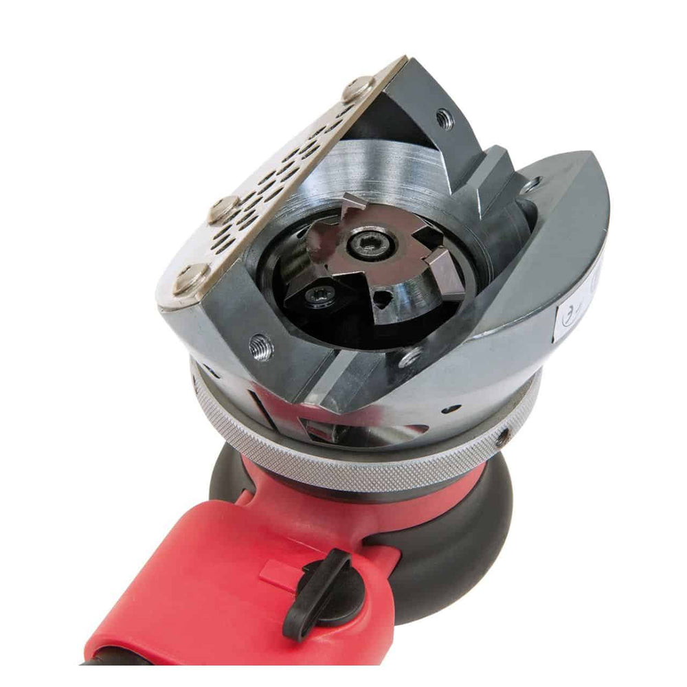• Pneumatischer Antrieb „Made in Japan“: Die Anfasmaschine ist mit einem hochwertigen Pneumatikmotor ausgestattet, der eine höhere Robustheit und Langlebigkeit bietet als herkömmliche Elektromotoren.