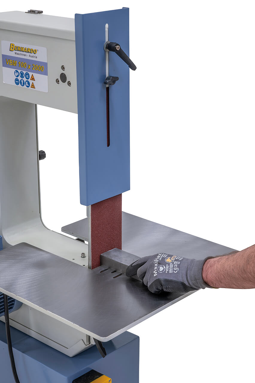 La Lucidatrice per metalli Bernardo VBM 100 x 2000 è una macchina professionale a nastro progettata per la lavorazione e la rifinitura di acciaio inox, metalli, plastica, legno e altri materiali. Dotata di due velocità (15 e 30 m/sec), consente un’ampia gamma di applicazioni, dalla sbavatura dei bordi alla lucidatura di saldature, fino alla levigatura di superfici e contorni. Il design verticale riduce l’ingombro, mentre la struttura robusta e priva di torsioni assicura stabilità e funzionamento regolare. La macchina è fornita con tre dispositivi standard per la levigatura di profili cilindrici (Ø 30 / 47 / 74 mm), un tavolo inclinabile fino a 60° e un pratico vano porta-attrezzi integrato nella base. Con nastro da 100 x 2000 mm, motore da 1,5 / 2,2 kW e aspirazione integrata, la VBM 100 x 2000 è la soluzione ideale per officine e carpenterie che richiedono precisione e versatilità.