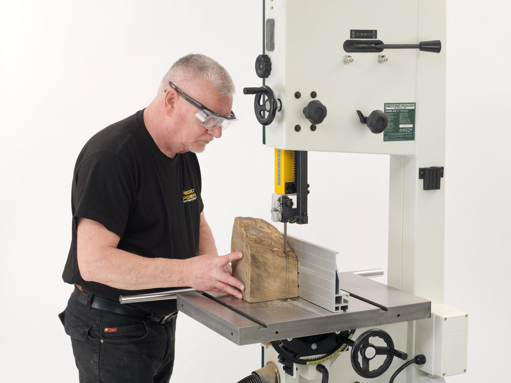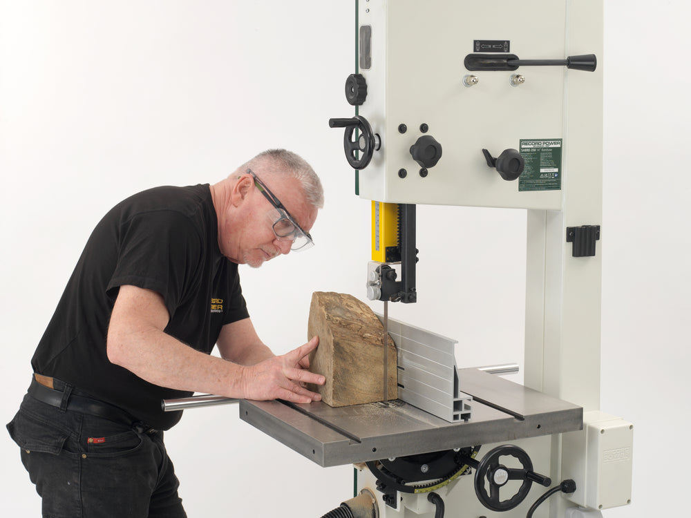 La Sabre 350 offre una profondità massima di taglio di 305 mm, adatta a pannelli e masselli di grande sezione.