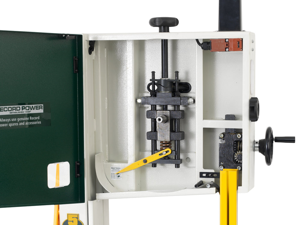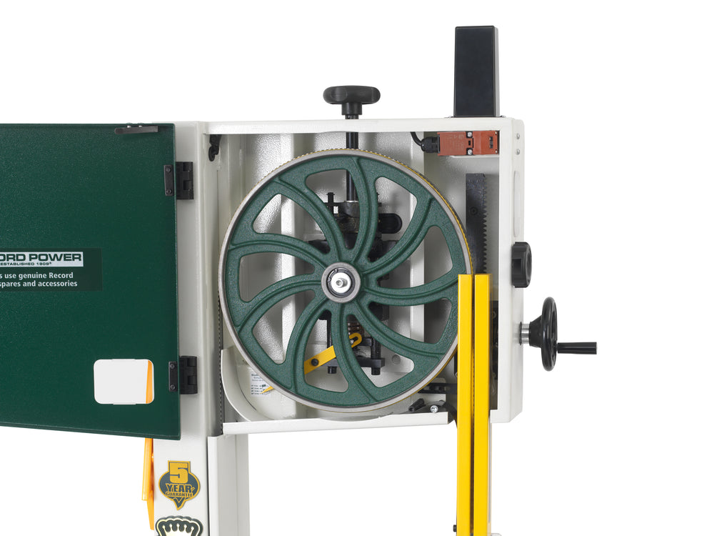 La Record Power Sabre-350 è una sega a nastro professionale progettata per falegnamerie, laboratori e scuole che richiedono potenza, precisione e capacità di taglio elevate.