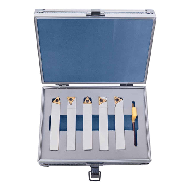 • 5-teiliger Drehmeißelsatz mit Hartmetalleinsätzen