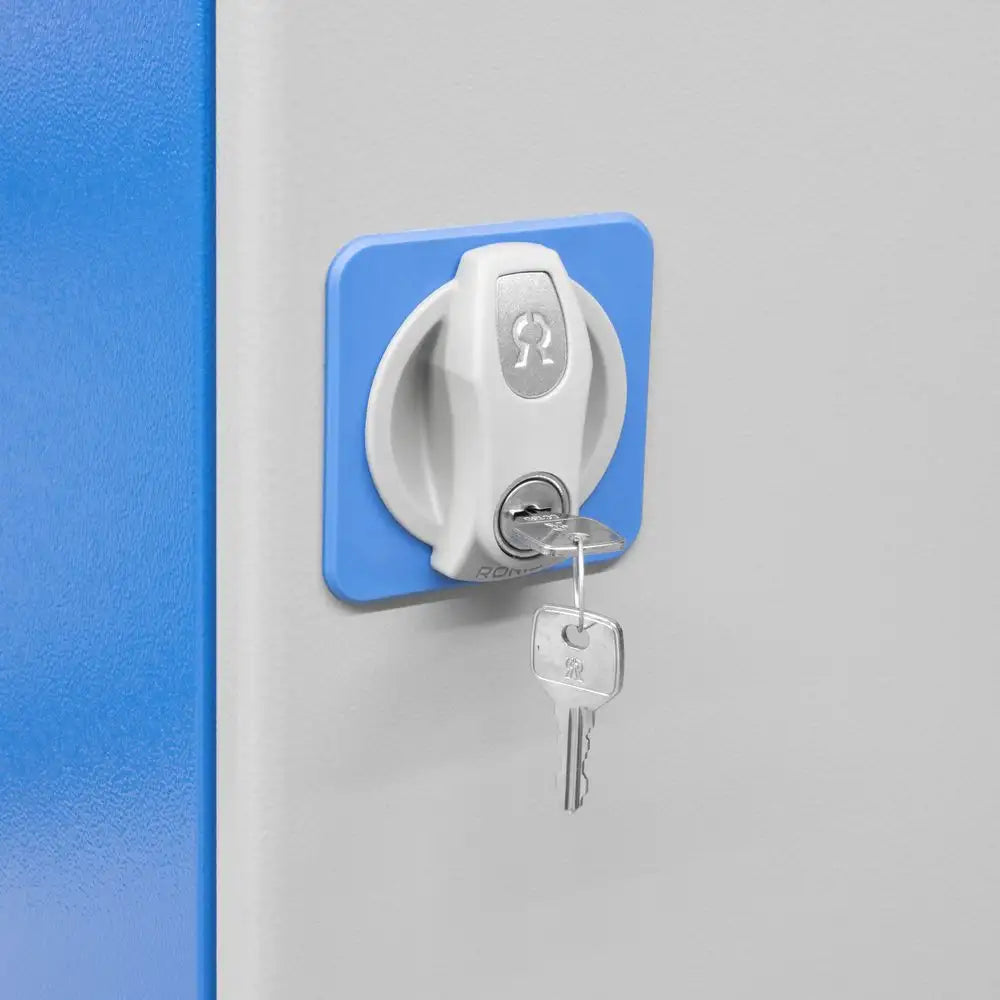 L’Armadio portautensili Güde TYPE A è progettato per offrire massima robustezza e organizzazione in officina, laboratorio o garage. La struttura interamente in acciaio, già assemblata, assicura solidità immediata e lunga durata nel tempo. Il design con bordi arrotondati migliora sicurezza ed estetica, mentre l’anta singola con cerniere interne e tiranteria di chiusura protegge efficacemente il contenuto. I quattro ripiani regolabili supportano fino a 50 kg ciascuno, permettendo di stoccare utensili e materiali anche pesanti. La verniciatura a polvere nei colori blu RAL 5015 e grigio RAL 7001 garantisce resistenza a urti e usura. Compatto ma capiente, è la soluzione ideale per chi cerca qualità professionale pronta all’uso.