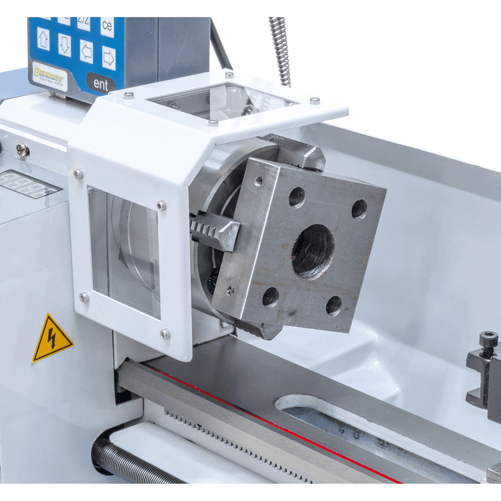 The Hobby 350 Vario bench lathe also offers—unlike the Hobby 300 Vario model—a 50 mm longer tip length and a more powerful drive motor. To reduce production times, this model can be equipped with a 2-axis digital display.