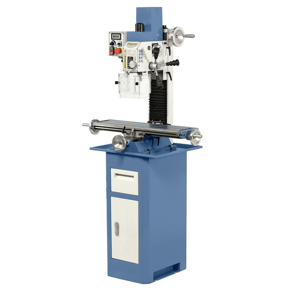 The KF 25 L Vario drilling and milling machine comes standard with a digital speed and spindle display. This model also offers 490 mm of X-axis travel. This machine is ideal for professional users, modelers, and trainees.