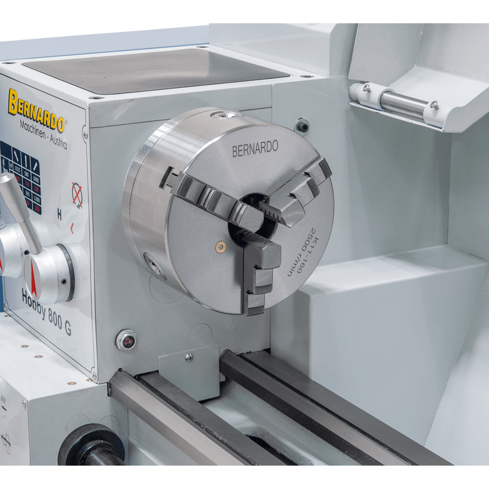 The Hobby 800 G lathe comes standard with a lead and draw spindle for thread cutting or automatic longitudinal and front feed. The 12-speed gearbox allows for quick speed adjustment without the need to replace the V-belt. Thanks to its compact design and high dead weight, this machine runs very smoothly and ensures precise work.