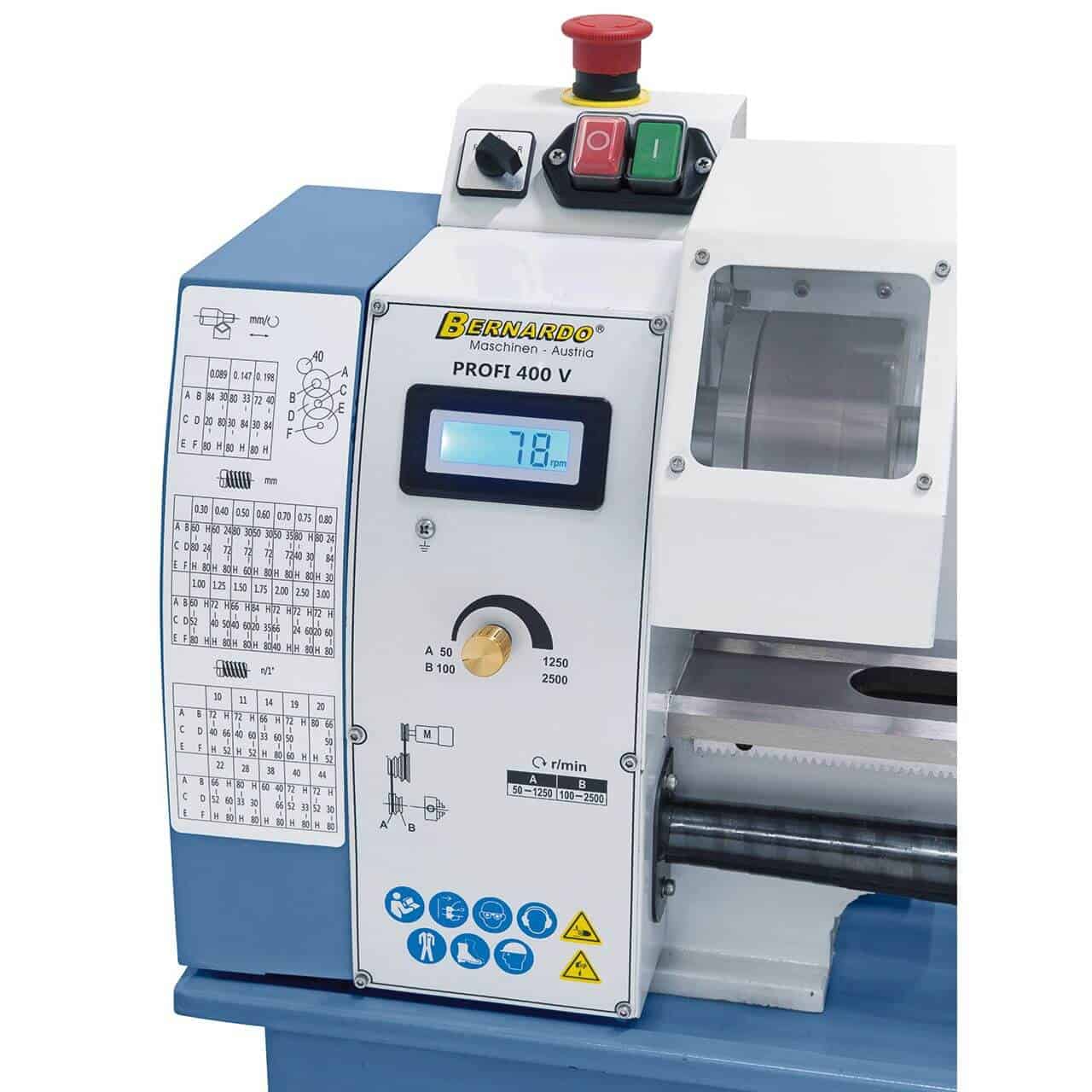 The Profi 400 V lathe features stepless speed control; the set speed is read on a digital display. Thanks to its good price-performance ratio, this model is ideal for model makers and beginners.