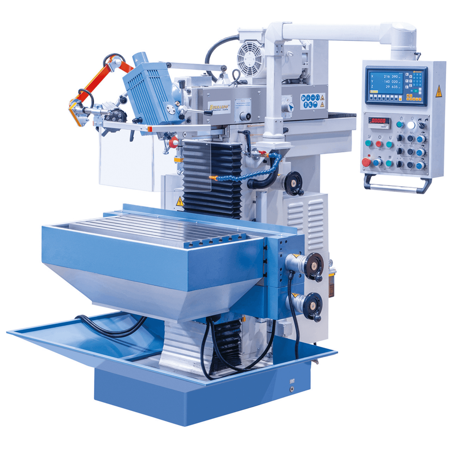 The WFM 800 Servo milling machine is designed for machining workpieces weighing up to 200 kg. Thanks to its stable and robust cast iron construction and the high rigidity of its machine components, this model meets the best requirements for precise machining. The main features of this machine are: a servo-controlled turret with electronic handwheels on all axes and a continuously variable speed controller.