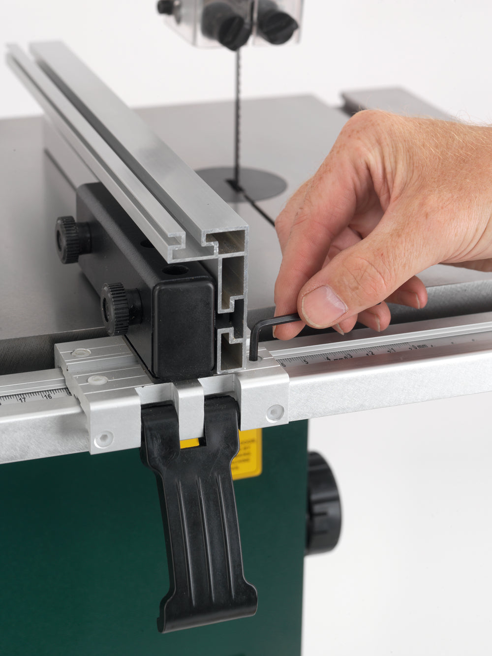 La struttura in acciaio garantisce rigidità, mentre il motore da 550 W di assorbimento e 370 W di resa permette di eseguire tagli in legno duro e tenero senza sforzo. La doppia velocità lama (460 e 1000 m/min) consente di adattarsi a diverse lavorazioni, dai tagli curvi ai tagli diritti.