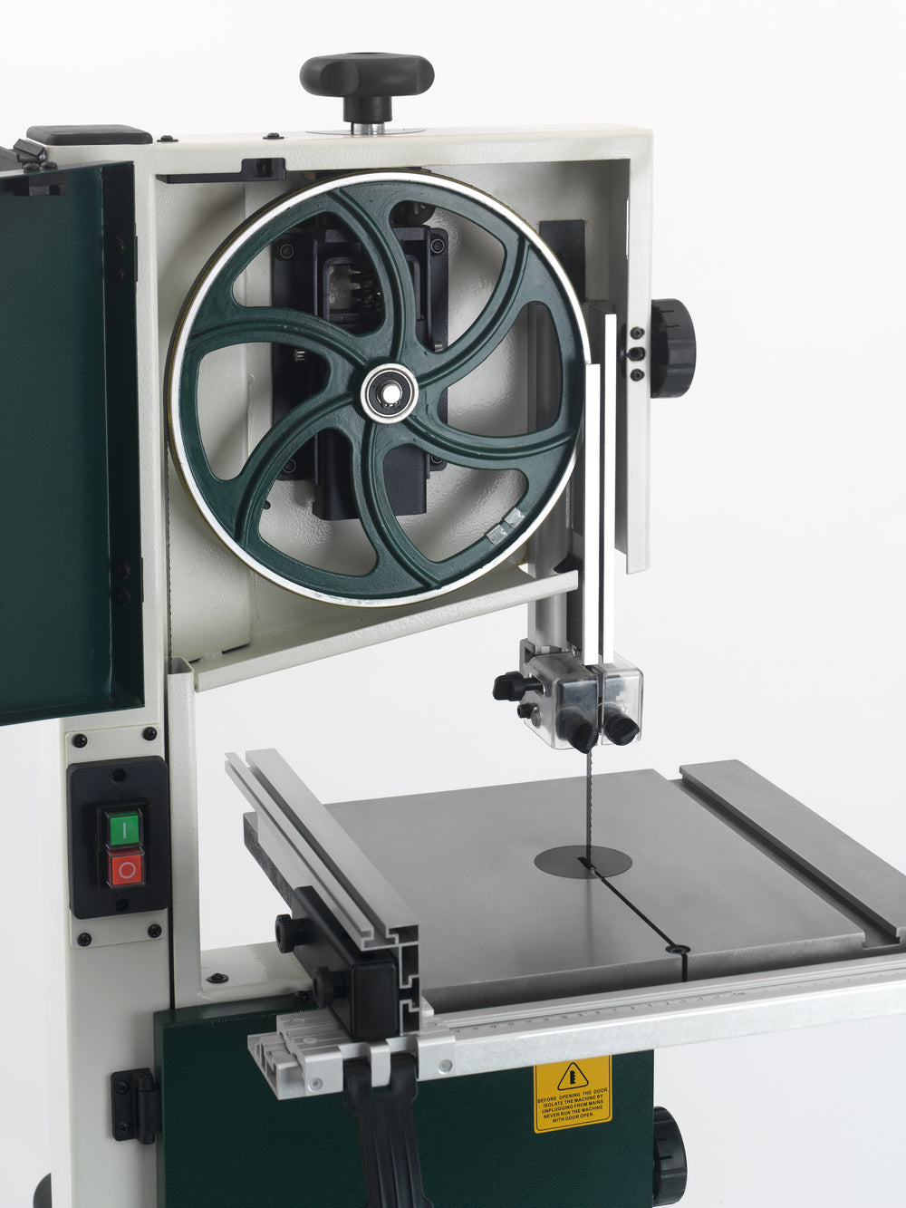 Il piano inclinabile in ghisa lavorata offre stabilità e finitura superiore, mentre la gola da 245 mm e la profondità di taglio da 127 mm permettono di gestire un’ampia gamma di pezzi.