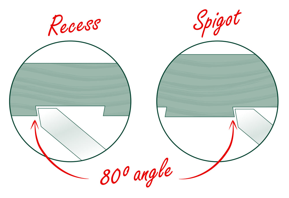 La Sgorbia a Coda di Rondine Record Power è progettata per creare tenoni (spigots) e recessi con angolo perfettamente compatibile con le ganasce dei mandrini Record Power. Il profilo della lama è affilato a 80° per corrispondere esattamente al profilo a coda di rondine delle ganasce SC, garantendo un accoppiamento preciso e un bloccaggio sicuro del pezzo durante la tornitura.
