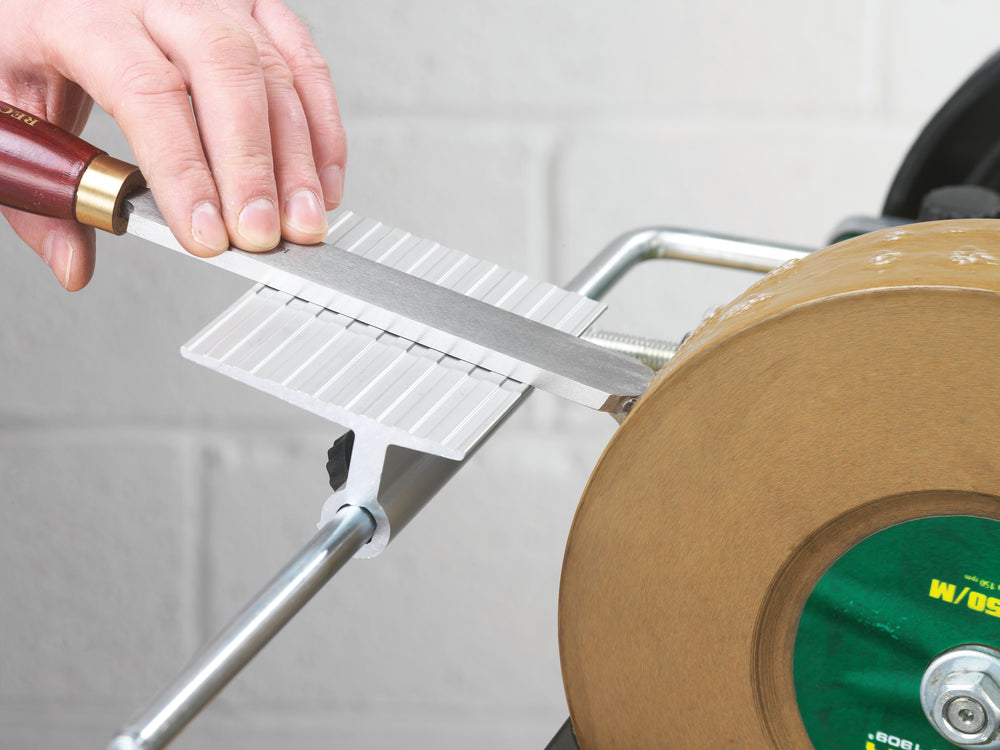 La superficie di appoggio regolabile consente di mantenere l’utensile stabile e ben guidato durante l’affilatura, garantendo un angolo di lavoro costante e una finitura precisa.
