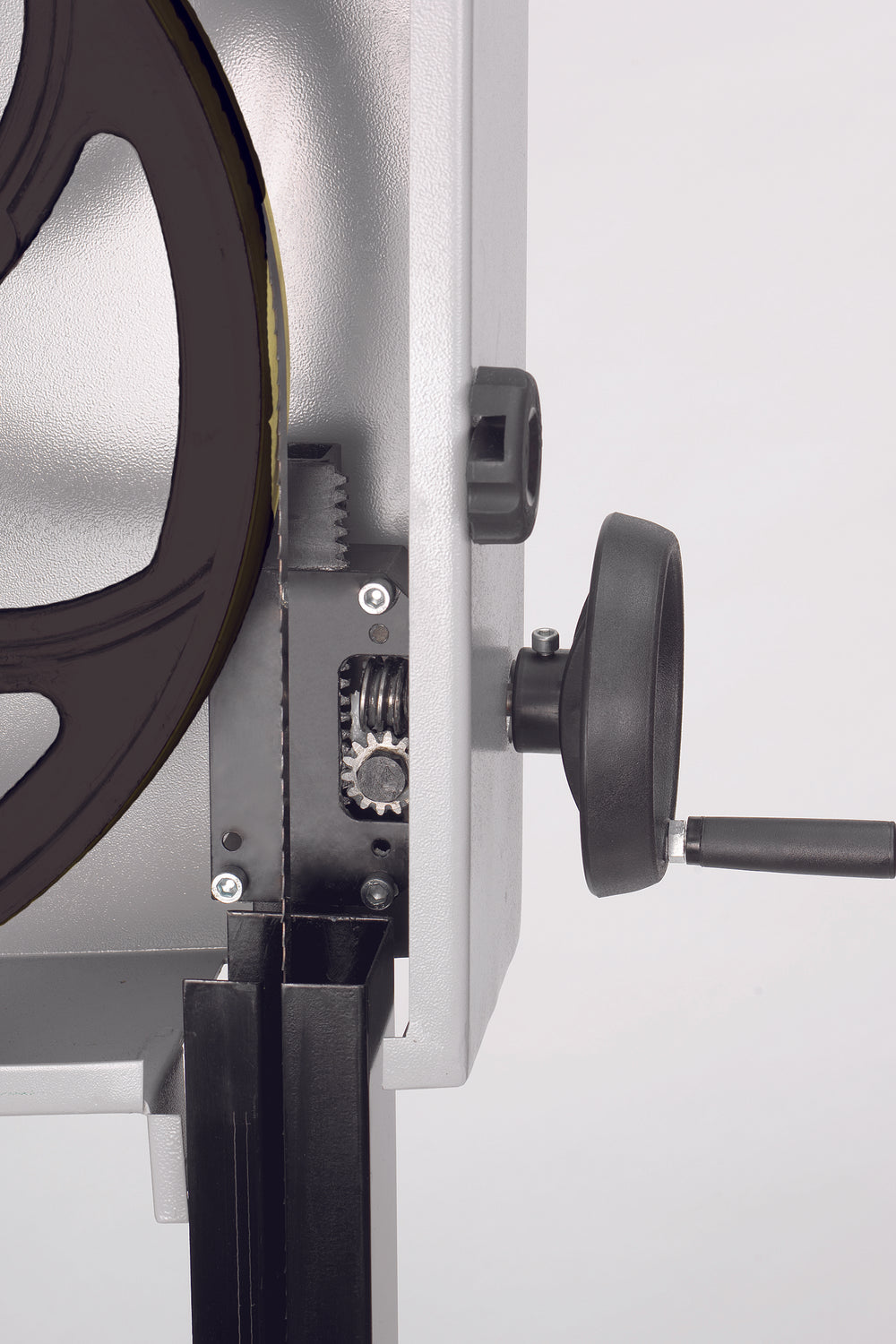 I volani della lama in ghisa, bilanciati dinamicamente, generano un effetto volano che migliora la scorrevolezza della lama e riduce le vibrazioni. Il motore da 2 HP (1500 W) e la profondità di taglio di 305 mm consentono di lavorare travi, tavole, masselli e lamelle sottili (veneer) con rapidità e precisione.