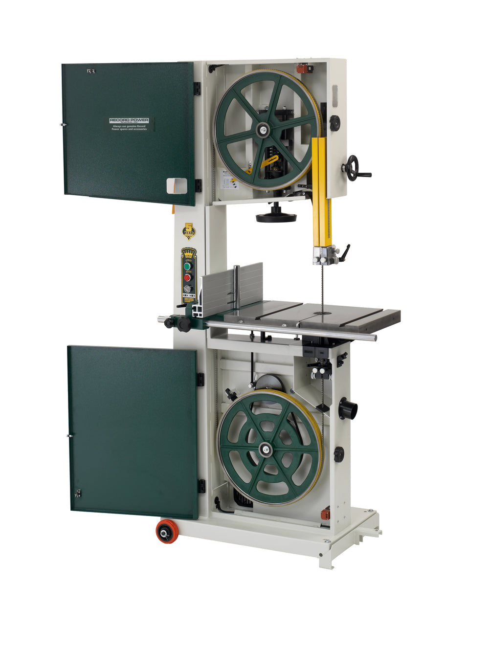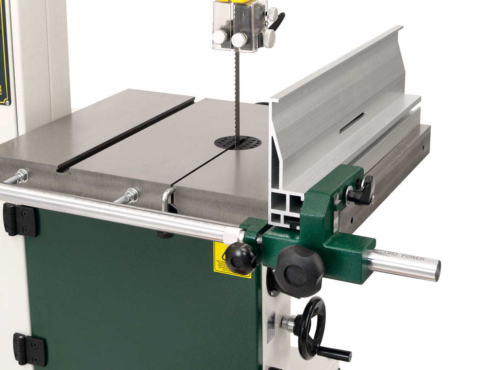 La Record Power Sabre-450 è una sega a nastro professionale di fascia alta, progettata per falegnamerie, laboratori e scuole che richiedono potenza, stabilità e capacità di taglio elevate. Con una profondità di taglio di 320 mm e una gola da 445 mm, può lavorare facilmente tavole spesse, pannelli e masselli di grandi dimensioni.