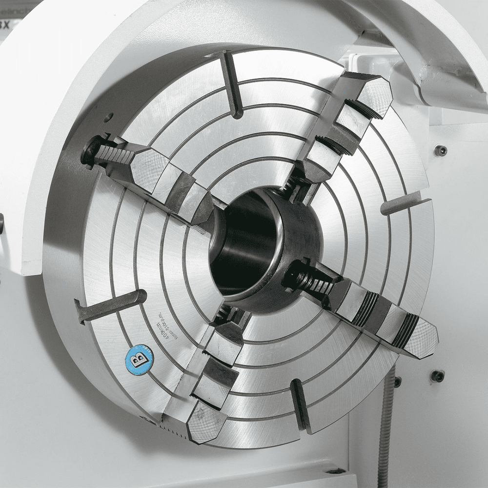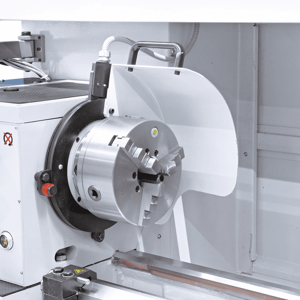 The lathe is equipped with a 3.0 kW motor in continuous duty (S1) and 4.5 kW in intermittent duty (S6 40%).