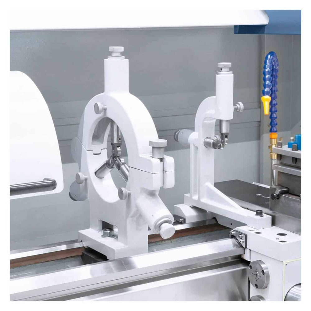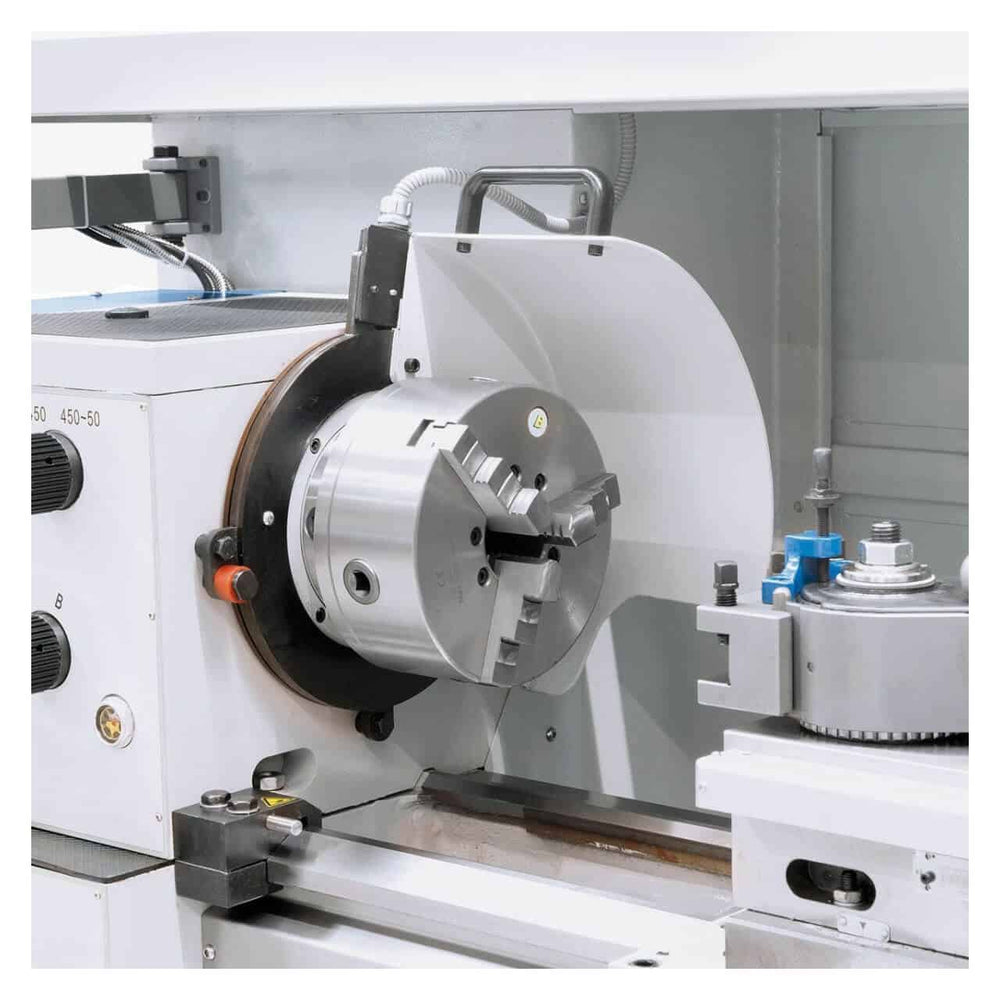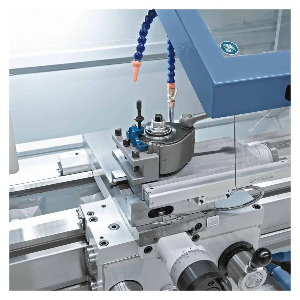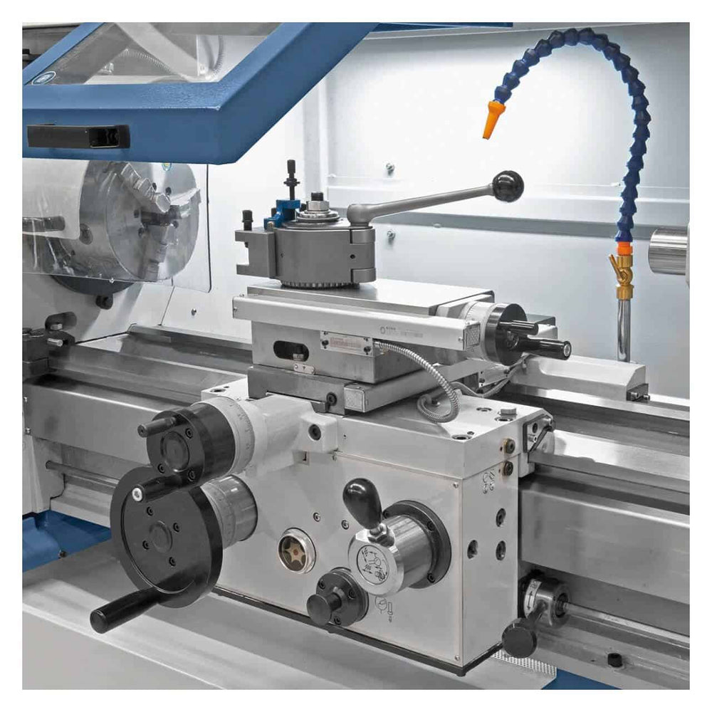 The Compact 400 V lathe is designed for the efficient production of single parts and small batches with high precision. Its compact design, ribbed prismatic cast iron bed, and infinitely variable speed control make it ideal for maintenance workshops, plant construction, production departments, and custom machining. The 52 mm spindle bore ensures versatility even for machining large-diameter shafts.
