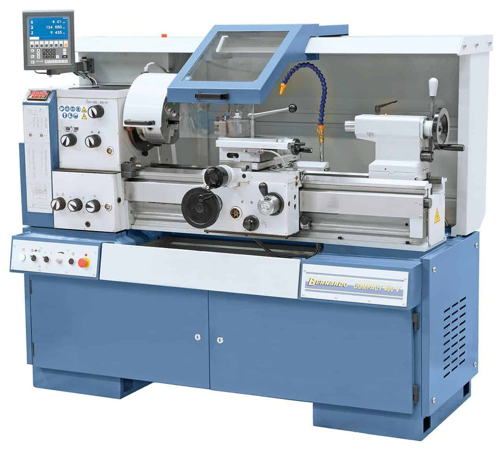 Compact 400 V universal lathe with inverter and 3-axis digital display