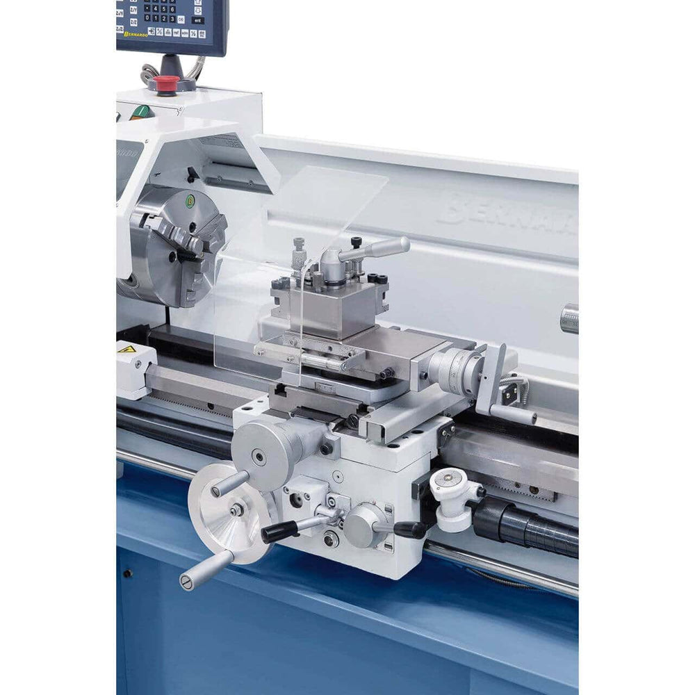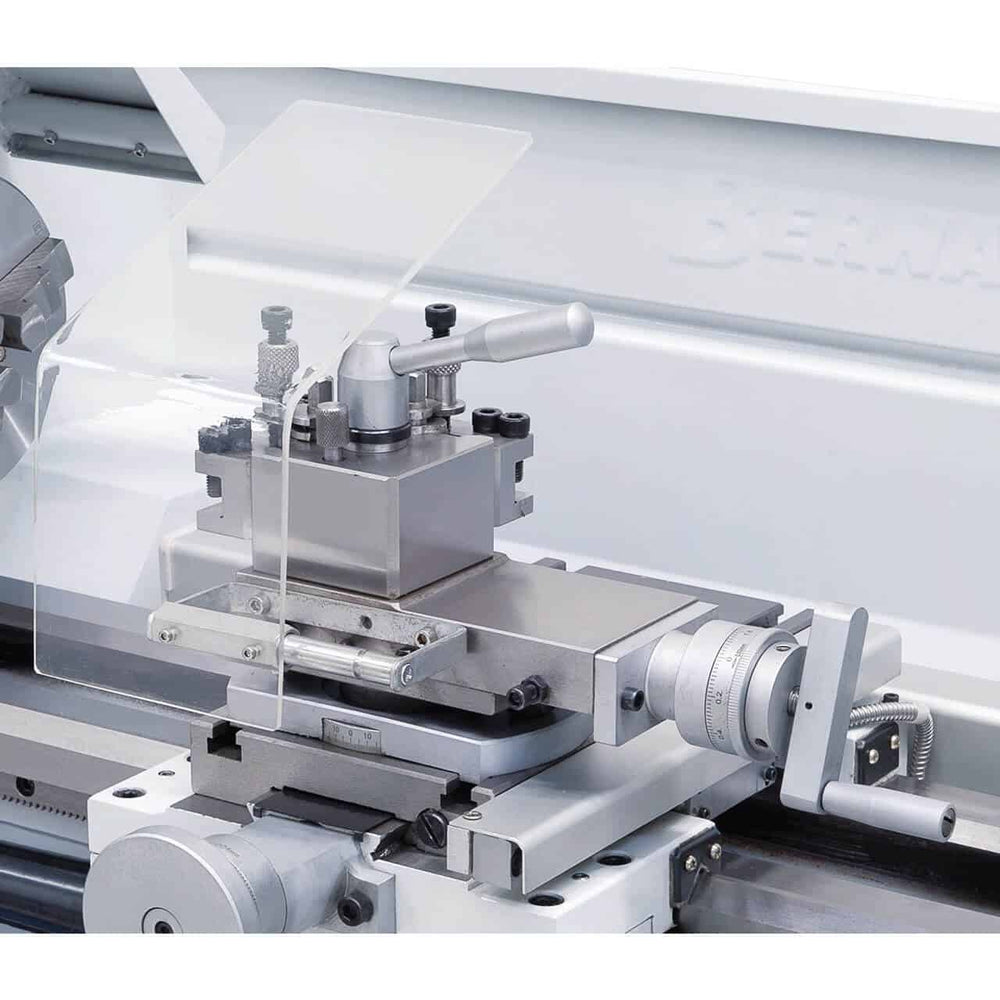 The Profi 700 PRO lathe, with its wide speed range of up to 3000 rpm and numerous features (e.g., three-phase motor with frequency converter, P5-quality main spindle bearing, micrometric longitudinal stop for serial production, slip clutch, etc.), is the ideal model for the demanding user. To reduce production times, this model is equipped with a 2-axis position display.