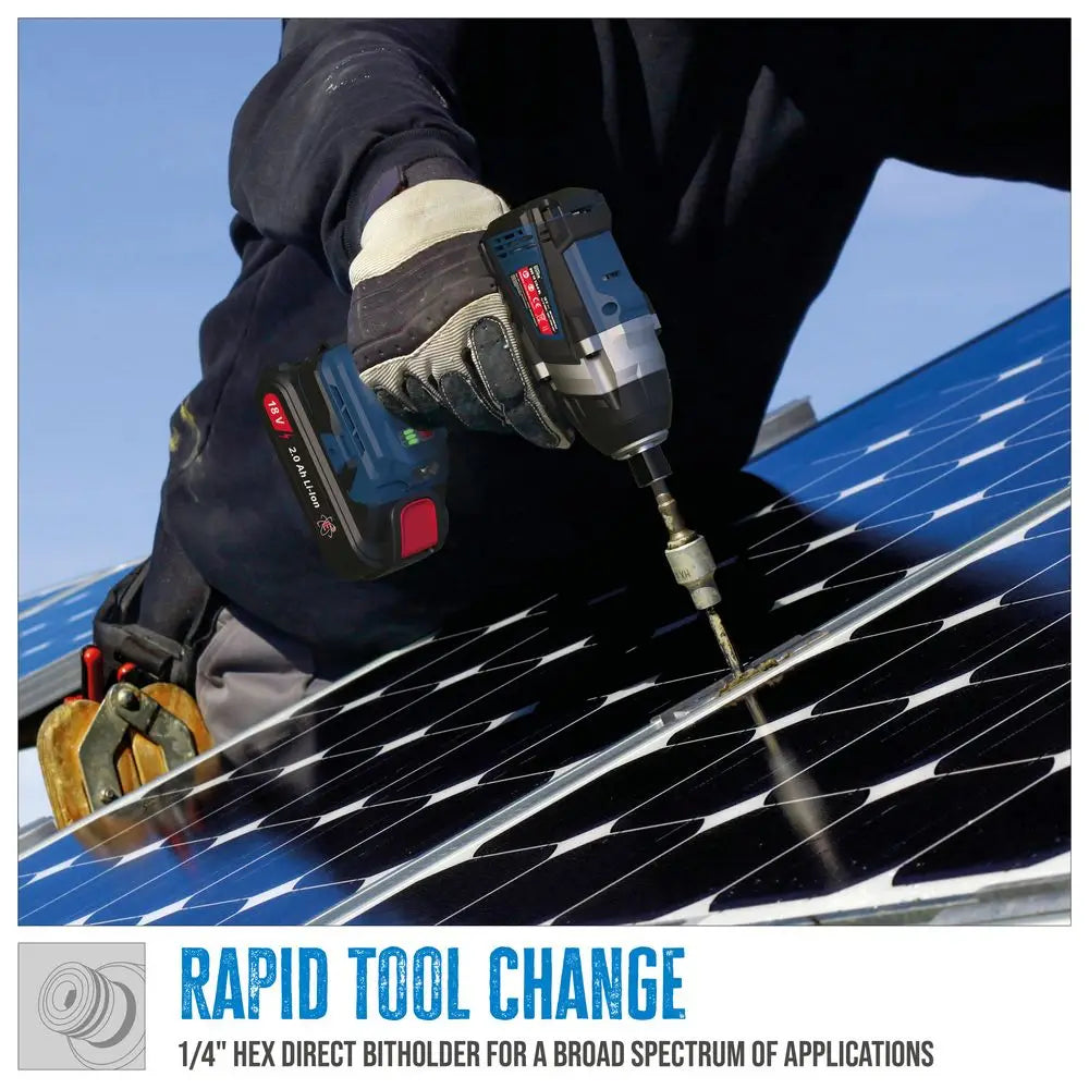 • Attacco esagonale da ¼” in metallo per inserti e bussole