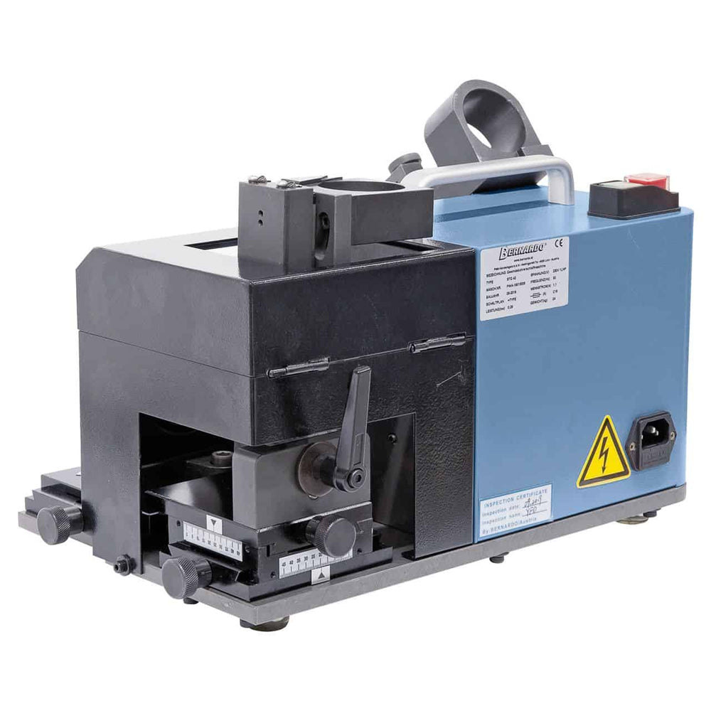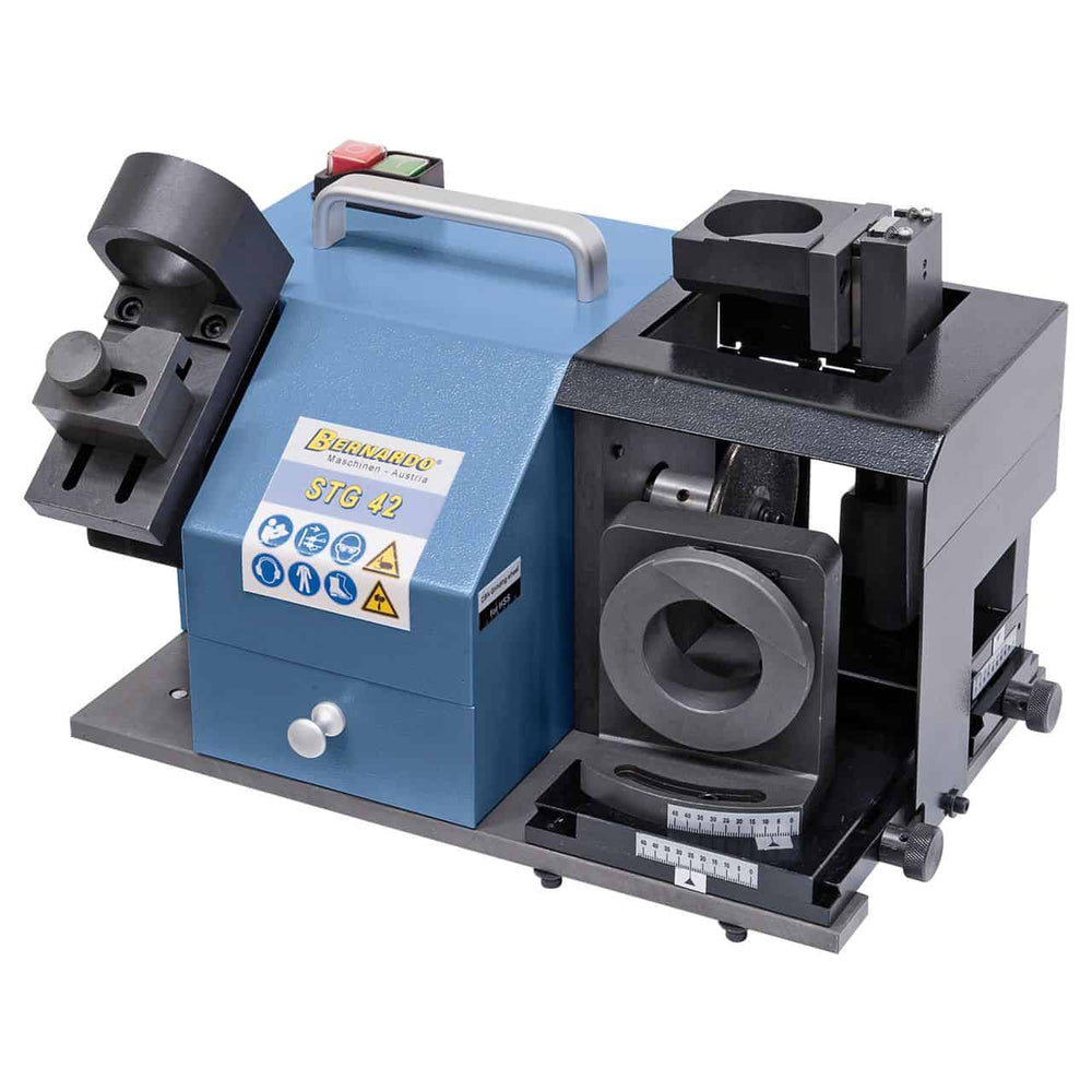 L’Affilatrice Bernardo STG 42 è una macchina portatile e robusta, progettata per l’affilatura precisa di maschiatori con 2, 3 e 4 scanalature. Questa versione supporta un range di lavoro da M16 a M42, rendendola ideale per utensili di grandi dimensioni in HSS o metallo duro (carbide). La struttura pesante e i piedini antivibrazione riducono le vibrazioni, mentre il rotore con cuscinetti a sfera di precisione assicura un funzionamento fluido e costante. L’angolo di affilatura regolabile tra 5° e 30° permette di adattarsi a diverse geometrie di utensili, garantendo risultati affidabili e ripetibili. Con motore da 0,25 kW a 4400 rpm e dimensioni compatte, la STG 42 è perfetta per officine e reparti di manutenzione che necessitano di qualità e praticità. Fornita completa di mola CBN, 9 pinze ER 40 (Ø 13–30 mm) e portapinze, rappresenta una soluzione completa per prolungare la vita utile dei maschiatori.