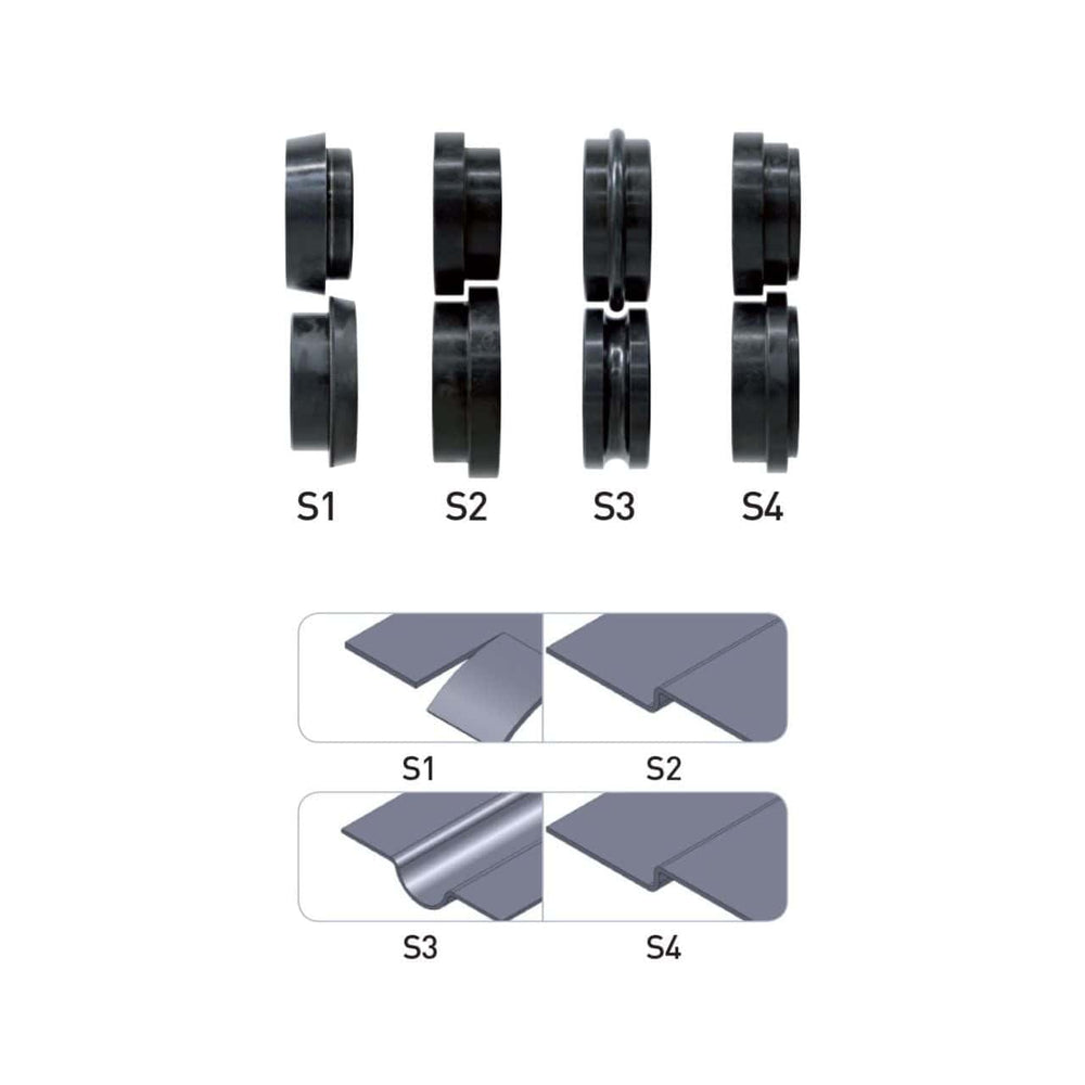 • 4 coppie di rulli per bordatura e flangiatura incluse