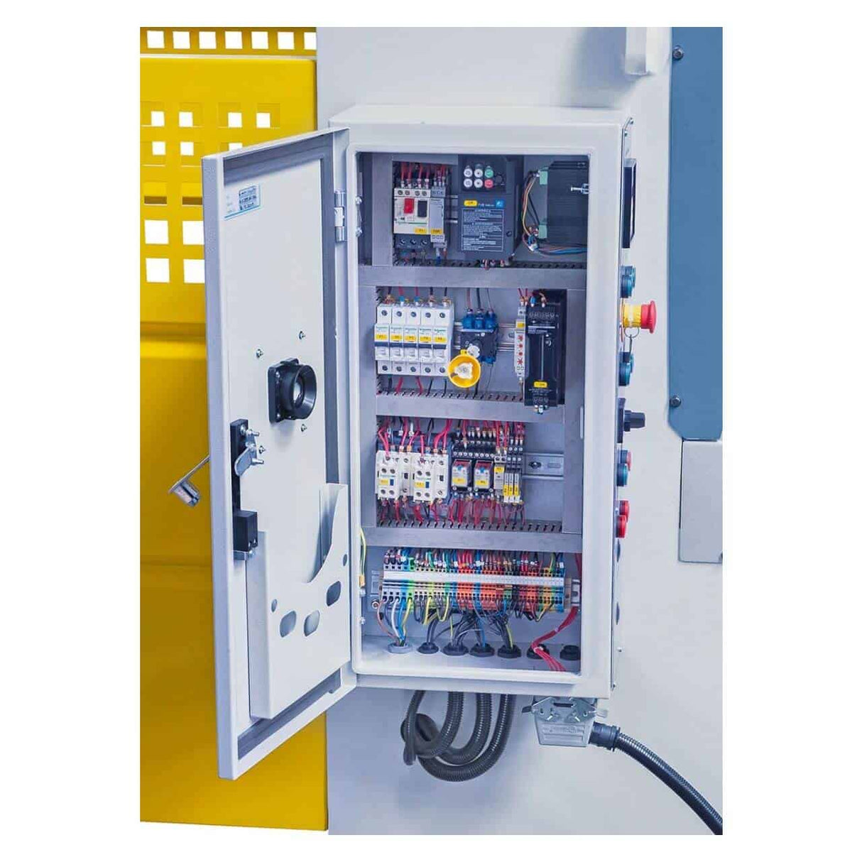 La Bernardo MTE 1360 x 6 mm NCC è una cesoia a ghigliottina motorizzata ad alte prestazioni, progettata per il taglio preciso ed efficiente di lamiere fino a 6 mm di spessore (400 N/mm²) e 1360 mm di lunghezza. Grazie alla battuta posteriore NC motorizzata con viti a ricircolo di sfere e al pannello di controllo BRL 401.2, consente regolazioni rapide e precise, aumentando la produttività. Le lame superiori e inferiori a doppio tagliente in acciaio di qualità assicurano tagli netti e senza bave, mentre l’angolo di taglio di 2° migliora la finitura del pezzo. La macchina offre espulsione lamiera sia frontale (fino a 400 mm) che posteriore, tavolo con rulli integrati e supporto frontale per una movimentazione agevole. Con un motore da 7,5 kW, una struttura robusta in acciaio saldato e un peso di 2350 kg, la MTE 1360 x 6 mm NCC è ideale per officine e industrie che necessitano di una cesoia potente, sicura e durevole.