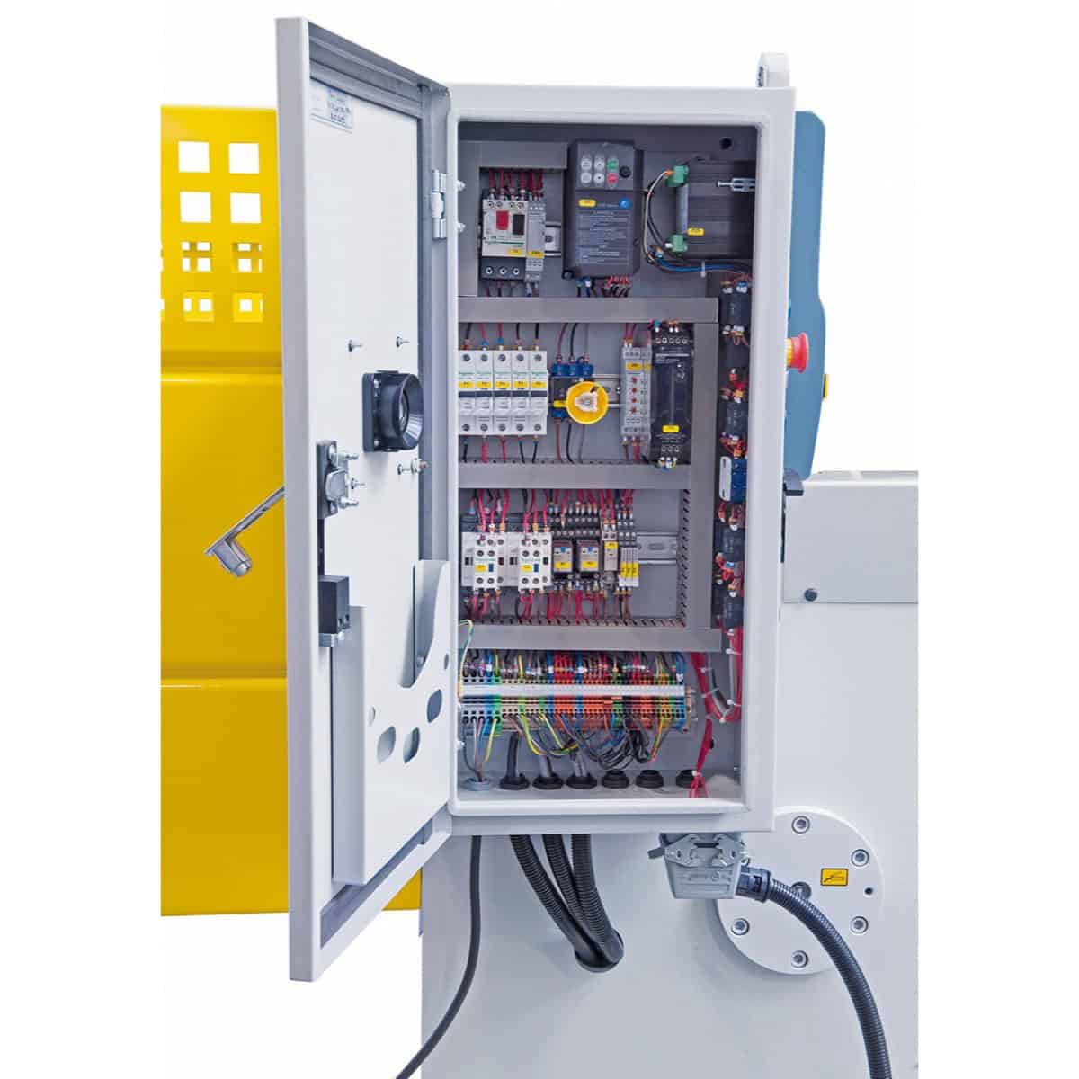 La Bernardo MTE 2060 x 3 mm NCC è una cesoia a ghigliottina motorizzata progettata per il taglio preciso ed efficiente di lamiere fino a 3 mm di spessore (400 N/mm²) e 2060 mm di lunghezza. Grazie alla battuta posteriore NC motorizzata con viti a ricircolo di sfere e al pannello di controllo BRL 401.2, permette regolazioni rapide, accurate e sicure. Le lame superiori e inferiori a doppio tagliente in acciaio temprato garantiscono tagli netti e senza bave, mentre l’angolo di taglio di 1°30’ assicura una finitura pulita. L’espulsione della lamiera può avvenire sia frontalmente (fino a 400 mm) che posteriormente, rendendo la macchina versatile. Il piano con rulli integrati e i supporti frontali agevolano la movimentazione anche di pezzi grandi. Con un motore da 4,0 kW, struttura robusta e un peso di 1750 kg, la MTE 2060 x 3 mm NCC rappresenta una soluzione ideale per officine e aziende che richiedono una cesoia compatta, affidabile e precisa.