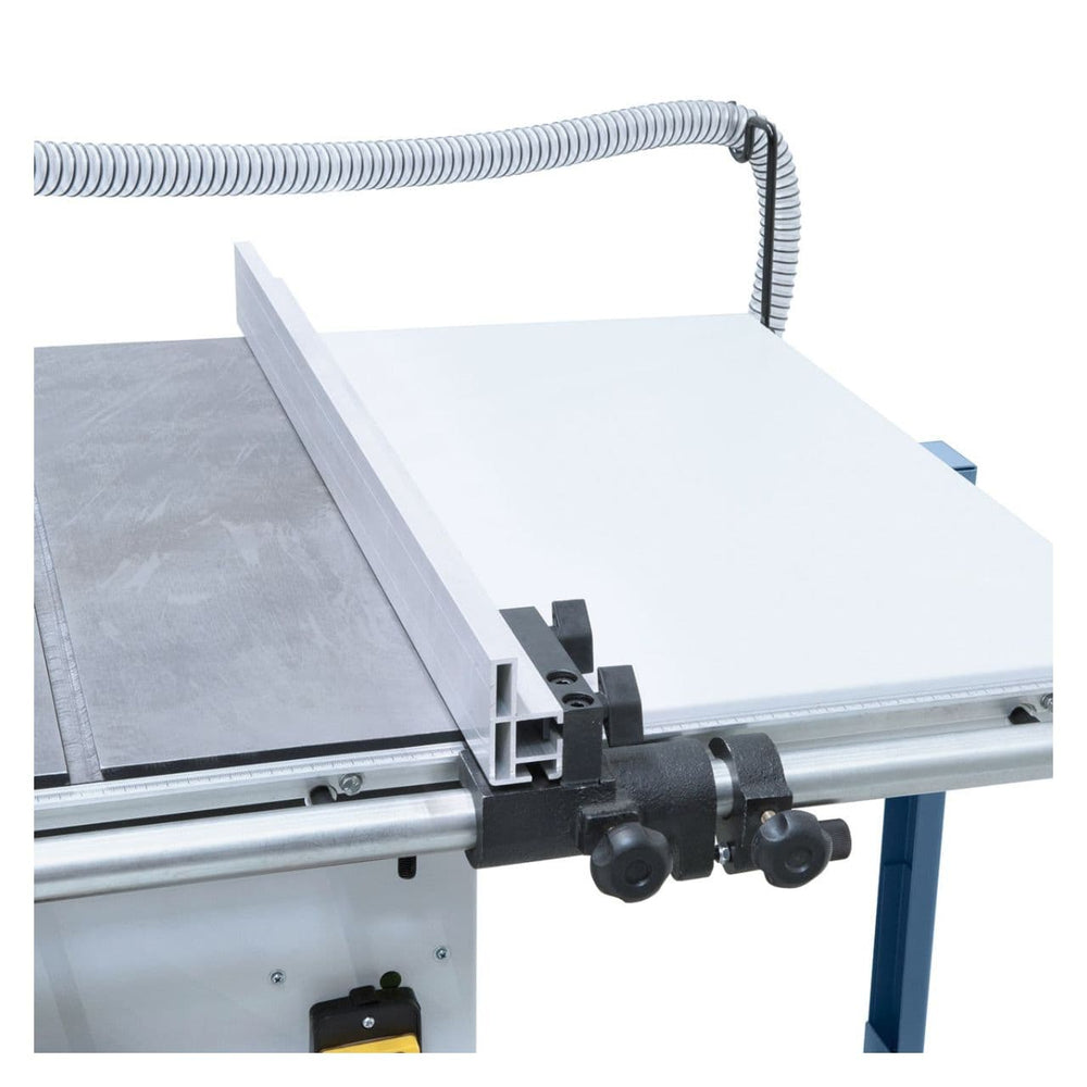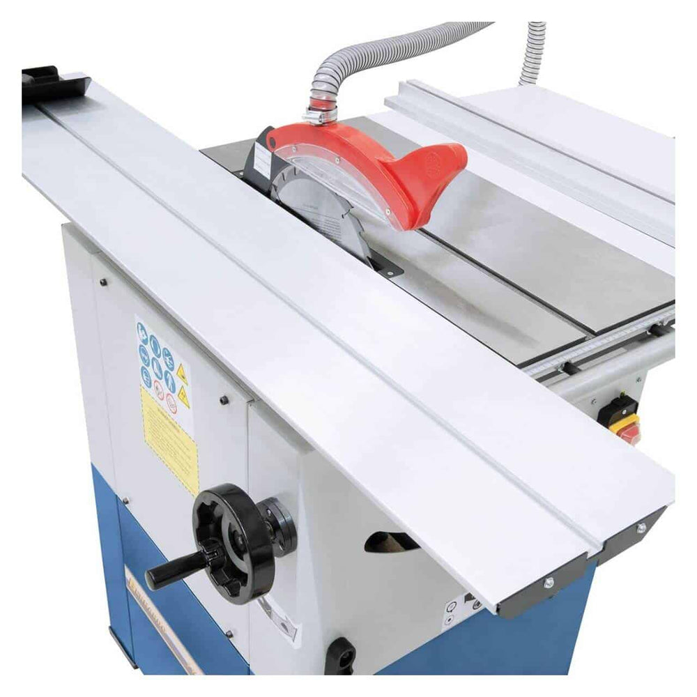 La sega da banco Bernardo PKS 250 P è progettata per falegnamerie, officine e hobbisti avanzati che cercano precisione e affidabilità. Dotata di un potente motore da 2,2 kW (3,0 HP) e predisposizione per 230 V o 400 V, assicura tagli fluidi e costanti. La lama in metallo duro da Ø 254 mm raggiunge una velocità di 4750 giri/min, permettendo un’altezza di taglio massima di 80 mm a 90° e 65 mm a 45°. Il carro scorrevole da 1300 mm e la guida parallela garantiscono precisione anche nei lavori più complessi, mentre il grande piano in ghisa con estensione da 670 × 400 mm offre stabilità e praticità. Completa di aspirazione Ø 100 mm, guide angolari, battuta di fine corsa e accessori, è una soluzione compatta ma professionale per lavorazioni di qualità.