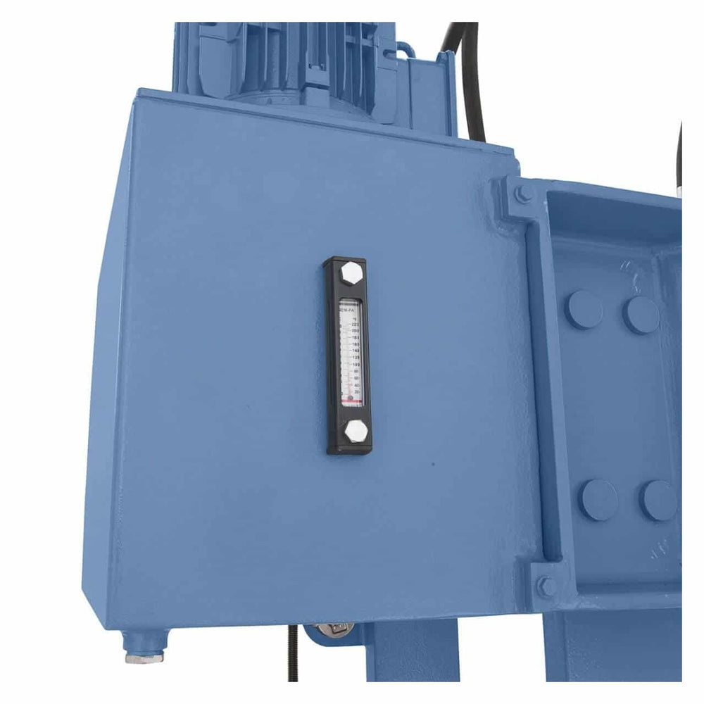 • Dotata di manometro, valvola di sovraccarico e supporti a prisma