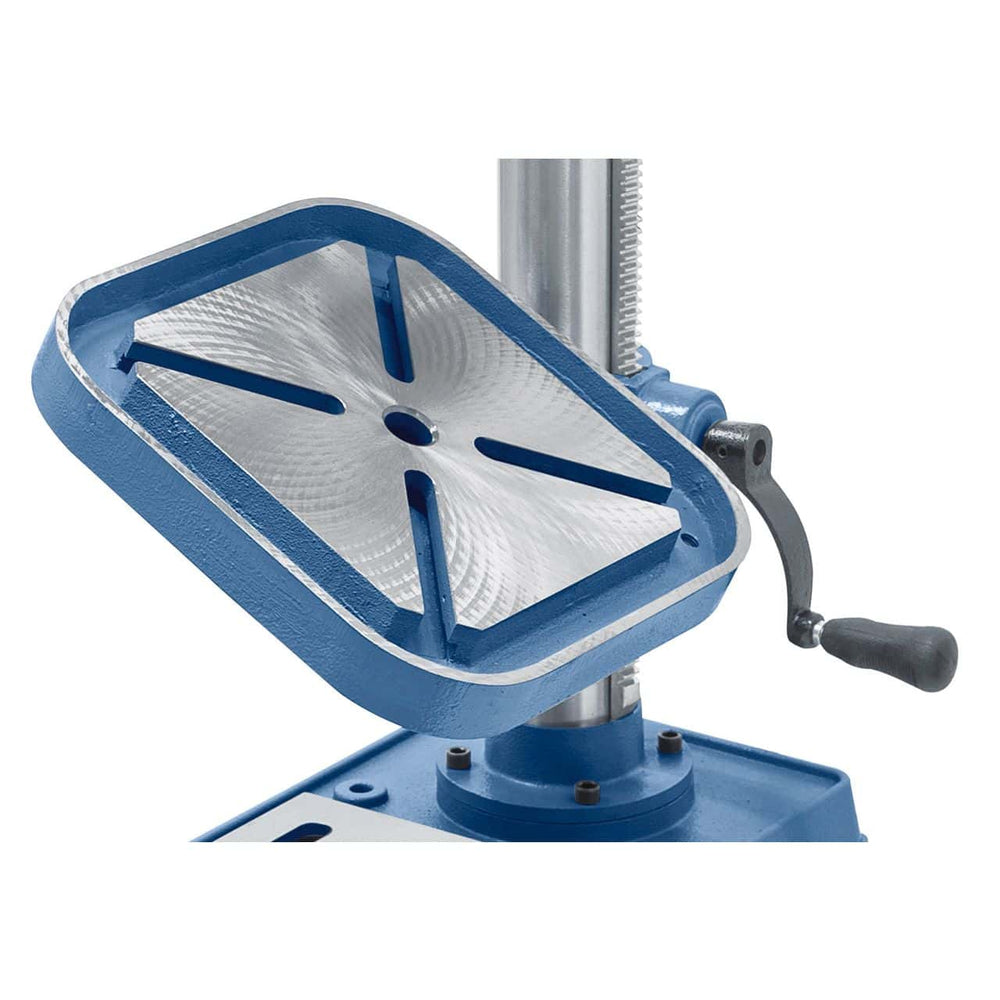 La macchina è equipaggiata con pulegge in ghisa per un funzionamento regolare e silenzioso, cuscinetti a sfere di alta qualità per elevata concentricità e un mandrino autoserrante professionale che garantisce precisione nelle forature fino a 25 mm nell’acciaio. Il piano di lavoro inclinabile ±45° con regolazione in altezza a cremagliera e le cave a T diagonali offrono grande versatilità. Motore in alluminio conforme agli standard IP54, comandi ergonomici e base con cave a T completano una struttura solida, sicura e ideale per applicazioni di precisione.