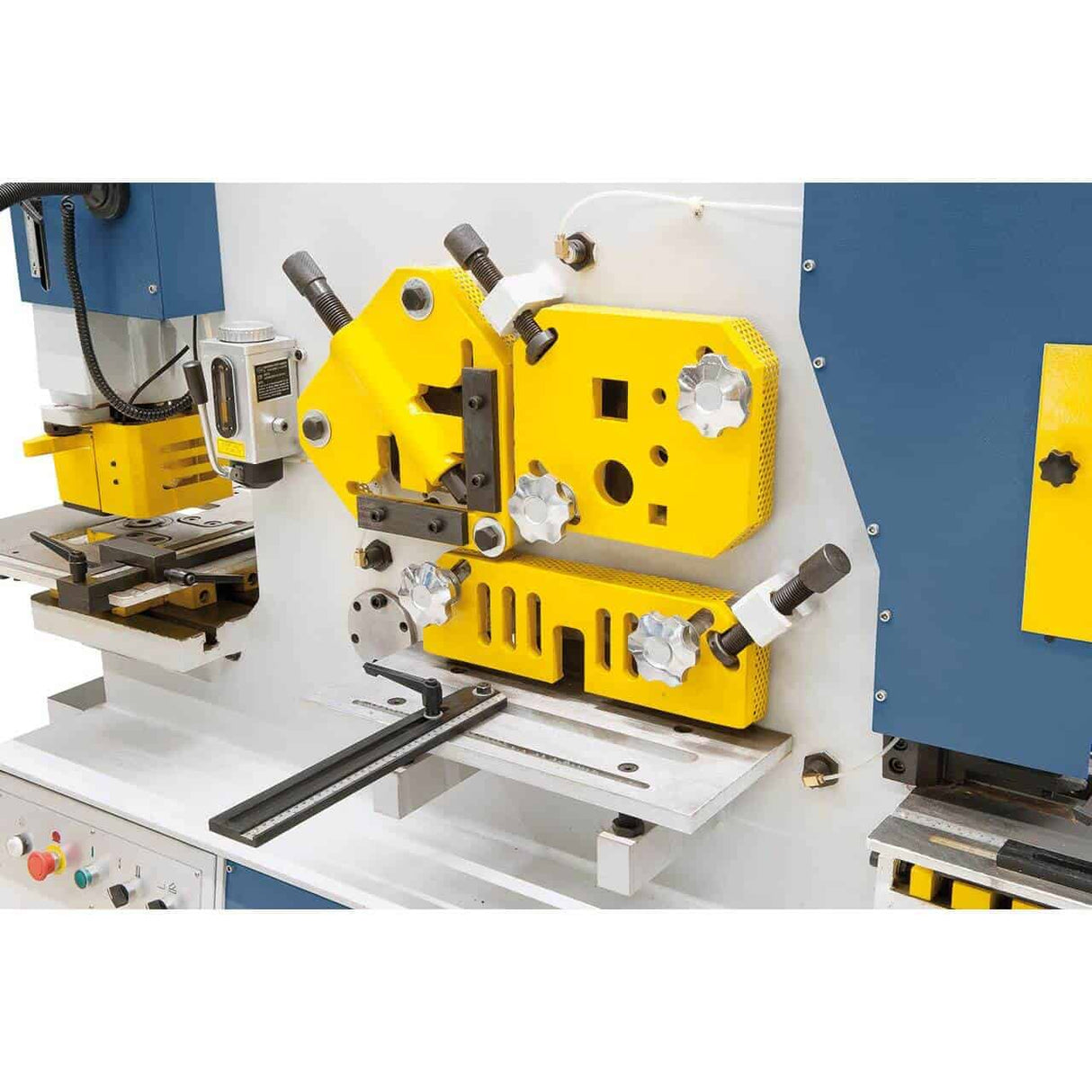 La cesoia idraulica Bernardo HPS 60 è una macchina multifunzione progettata per la lavorazione professionale di acciai e profilati. Con una forza di punzonatura di 60 tonnellate, consente di realizzare fori fino a 25 mm di diametro su spessori di 16 mm, ampliabili a 50 mm con accessori opzionali. Grazie alle sue stazioni operative, è in grado di tagliare piatti in acciaio fino a 330 mm di larghezza, profili angolari, barre tonde e quadre, oltre a profili a T, U e I. La stazione di intaglio integrata consente di eseguire intagli rettangolari e triangolari su materiali fino a 16 mm di spessore. Con un motore da 4 kW e una struttura solida da 1600 kg, la HPS 60 offre potenza, precisione e lunga durata. È la scelta ideale per carpenterie metalliche, officine meccaniche e aziende che necessitano di una macchina robusta e versatile.
