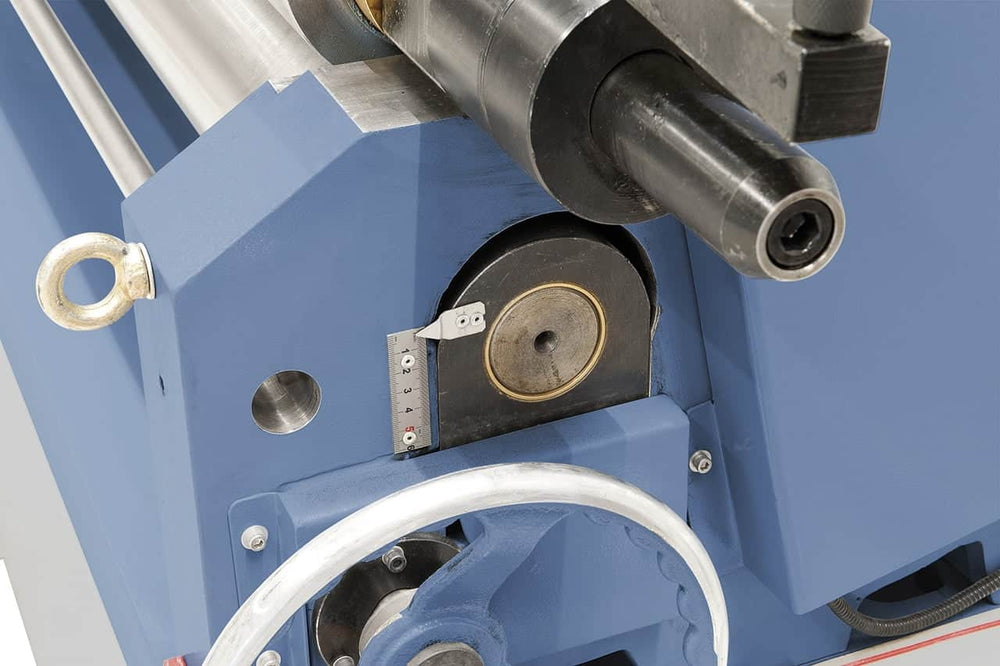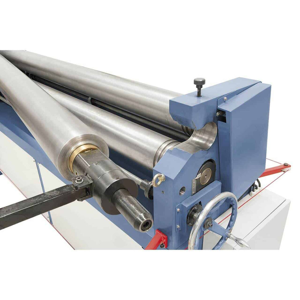 La calandra Bernardo MRC 2050 – 4,0 MD è una macchina professionale ad alte prestazioni, progettata per la laminazione precisa di acciaio, inox, lamiera zincata e alluminio. Con rulli da 2050 mm e una capacità fino a 4,0 mm di spessore (400 N/mm²), rappresenta la scelta ideale per carpenterie e reparti produttivi che richiedono potenza e precisione. La struttura in lamiera d’acciaio estremamente solida garantisce stabilità anche sotto carichi intensivi. Il rullo superiore fisso e scorrevole facilita la rimozione del pezzo finito, mentre i rulli inferiore e posteriore regolabili, con preflessione fino a 3 mm, permettono una lavorazione flessibile. Dotata di rulli temprati da Ø 150 mm e trasmissione robusta, la MRC 2050 – 4,0 MD offre prestazioni superiori. Completa di avvicinamento motorizzato del rullo posteriore con indicatore digitale, pedale mobile con arresto di emergenza e corda di sicurezza, assicura il massimo in termini di produttività e sicurezza.