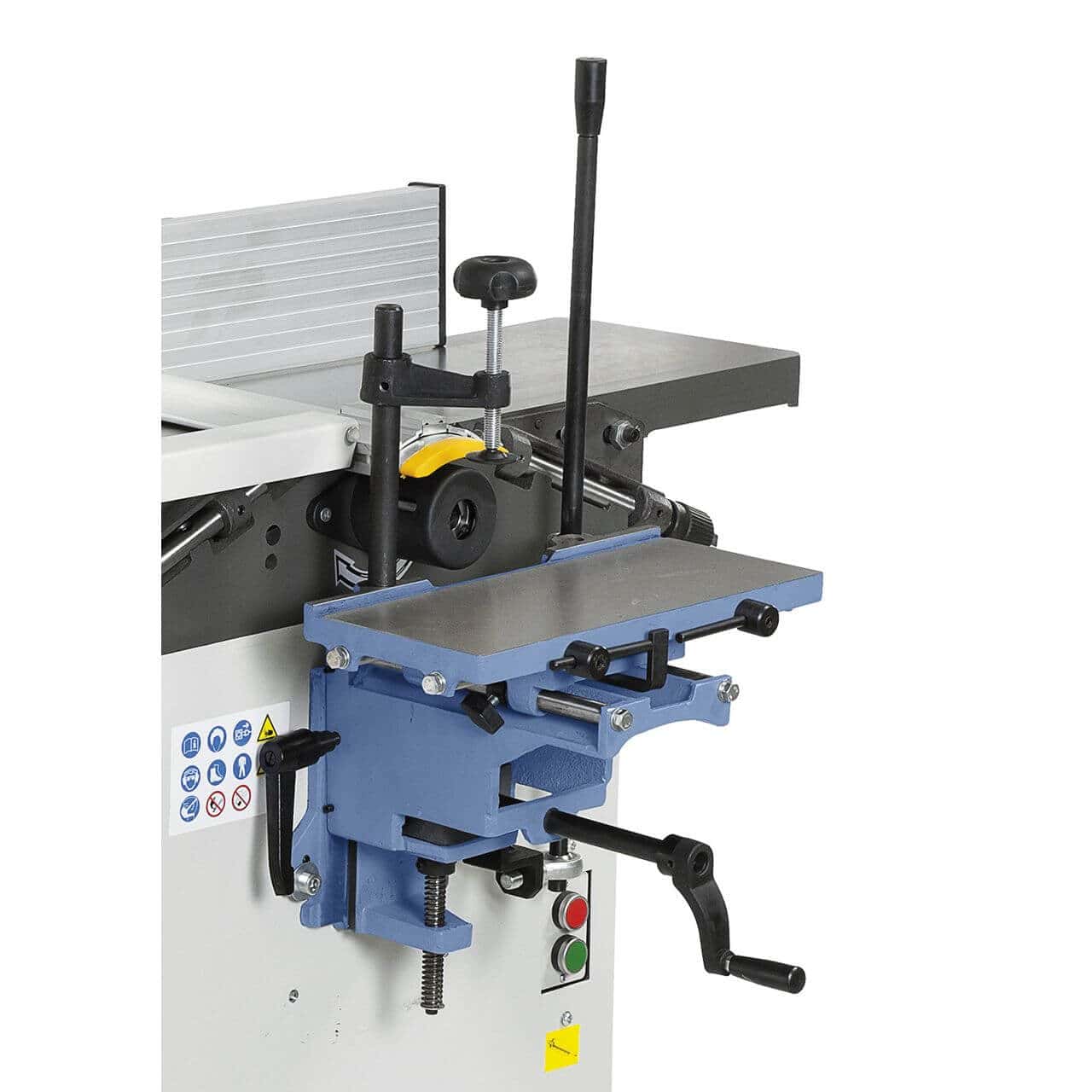 La CWM 250 R è una macchina combinata compatta e robusta, progettata per artigiani e hobbisti che necessitano di versatilità in spazi ridotti. Questa soluzione tutto-in-uno permette di eseguire operazioni di piallatura, spessorizzazione, taglio, fresatura e foratura con precisione e semplicità. Il tavolo a rulli integrato, la struttura in ghisa e la predisposizione per cavatrice opzionale la rendono una scelta affidabile per ogni laboratorio domestico o semi-professionale.