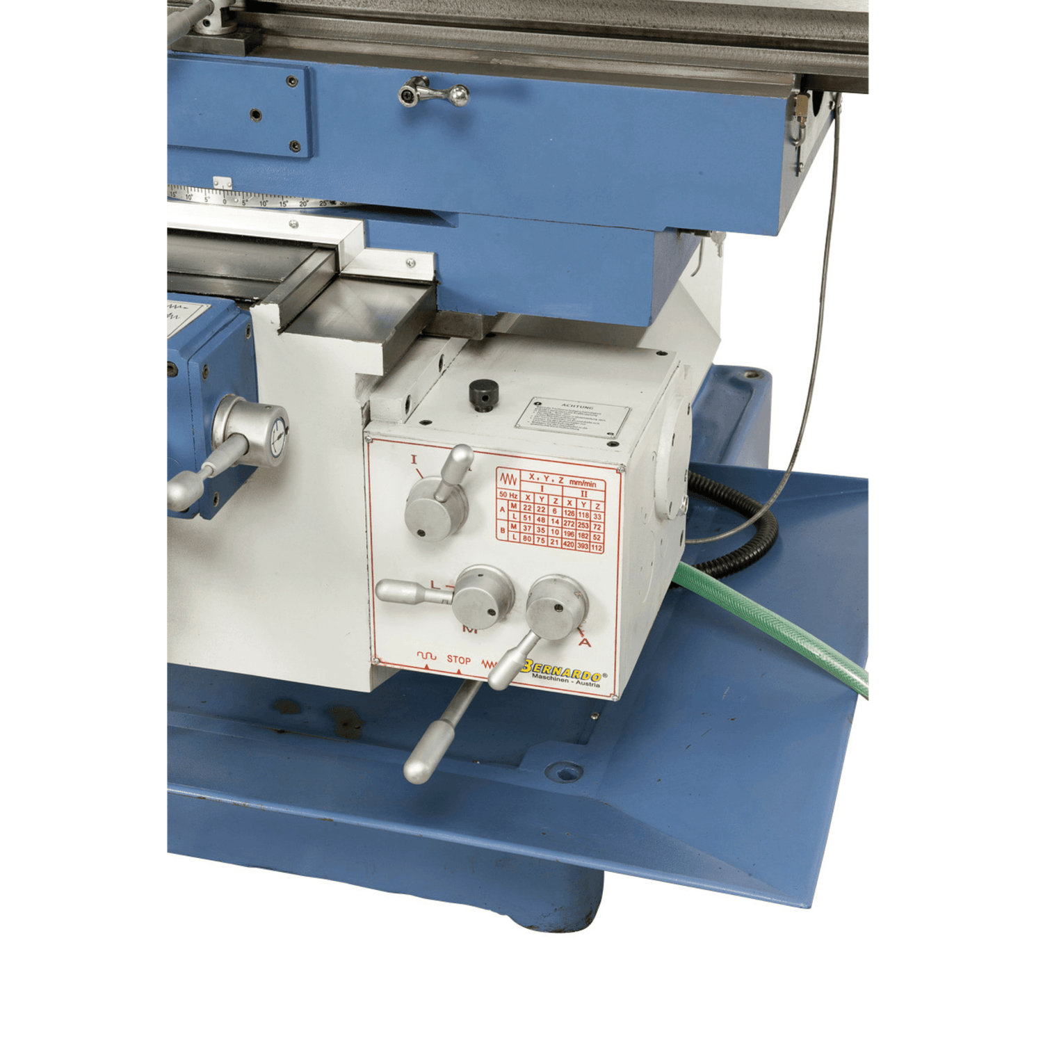La Bernardo Fresatrice universale UWF 150 è progettata per lavorazioni professionali ad alta precisione, offrendo massima flessibilità grazie al mandrino orizzontale e verticale con attacco ISO 50. Dotata di 8 avanzamenti automatici su tutti gli assi, garantisce produttività elevata e risultati impeccabili. La struttura in ghisa massiccia riduce le vibrazioni, mentre le guide rettangolari su assi y e z assicurano stabilità durante la fresatura. Il piano di lavoro di grandi dimensioni (1650 x 360 mm) consente di operare su pezzi voluminosi, con regolazioni rapide e comandi intuitivi su pannello girevole. Il display digitale a 3 assi ES-12 H integrato agevola l’operatore, permettendo un controllo preciso dei movimenti. Ideale per officine meccaniche, carpenterie e lavorazioni industriali, questa fresatrice combina potenza, robustezza e affidabilità in un’unica soluzione.