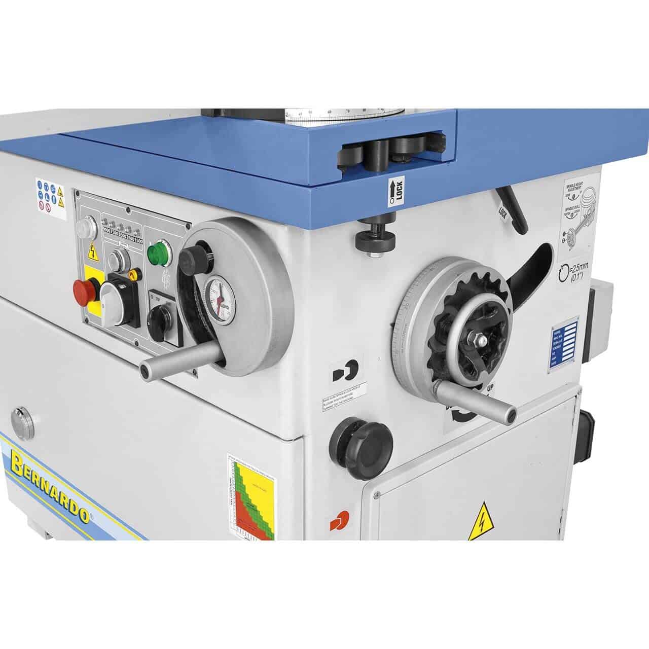 La TS 900 F è una fresatrice verticale professionale con albero inclinabile da -10° a +45°, dotata di carro scorrevole integrato nel piano di lavoro. Grazie alla costruzione in ghisa grigia rinforzata e alla potenza del motore da 4,0 kW, questa macchina offre elevata precisione, sicurezza e comfort d’uso. Ideale per profilature, tenonature e lavorazioni complesse su grandi pezzi grazie alla corsa di 840 mm del carro.
