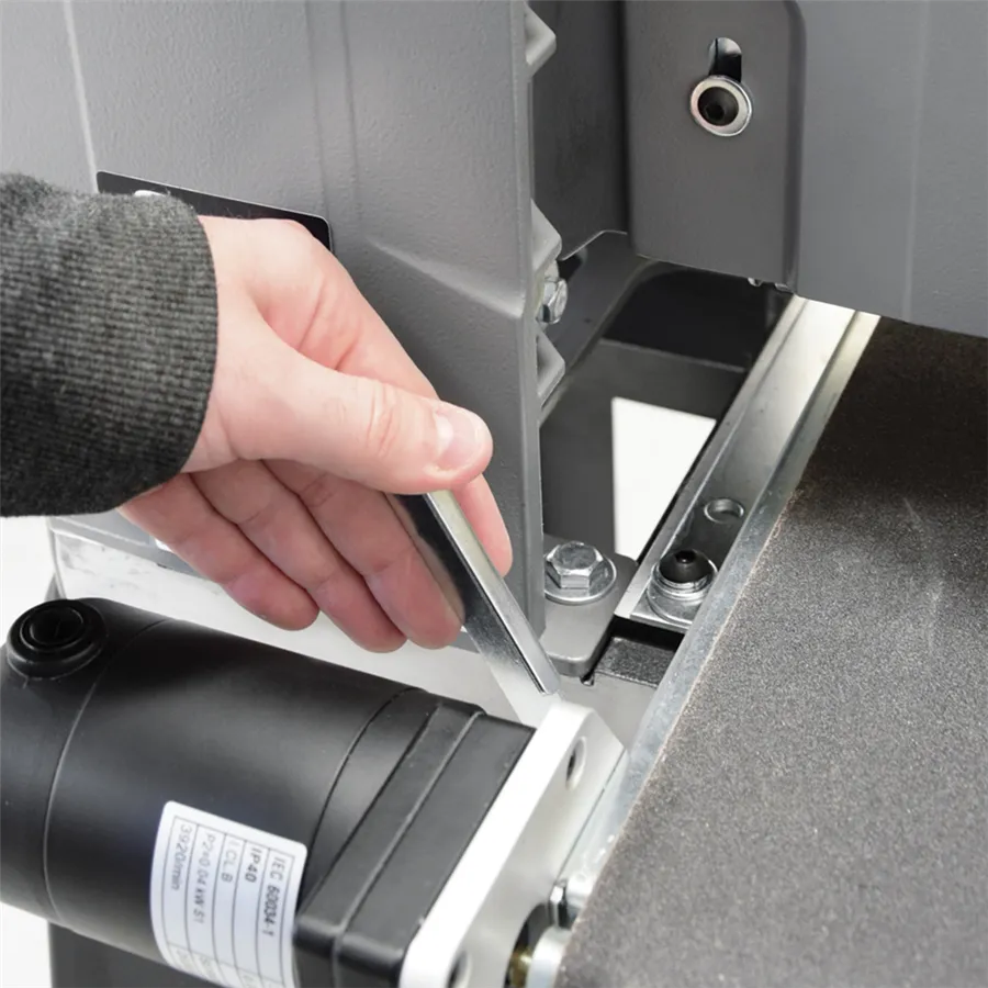 No, grazie al sistema a rilascio rapido, la sostituzione del nastro abrasivo è semplice e veloce, senza strumenti speciali.