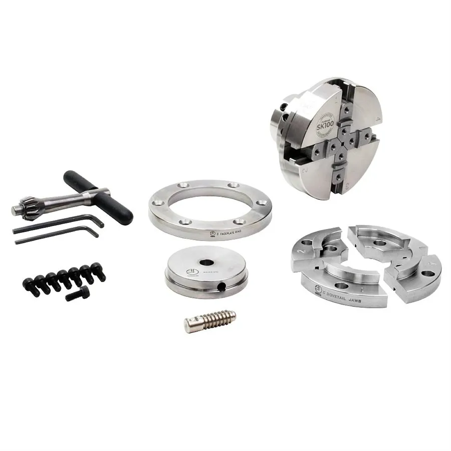 La tecnologia di produzione CNC garantisce la massima precisione e affidabilità del mandrino. Il corpo del mandrino in acciaio inossidabile da 100 mm (4 pollici) di diametro, comprensivo di filettatura M33 x 3,5mm, è realizzato in un unico pezzo. Questa caratteristica assicura un'eccellente concentricità e minimizza le vibrazioni durante l'utilizzo. Il mandrino è dotato di 4 ganasce per un serraggio ottimale.
