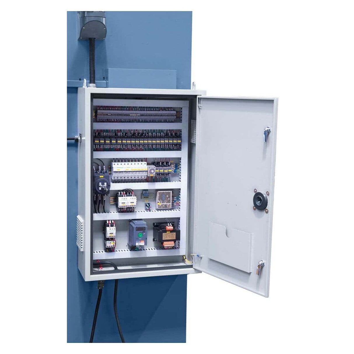 La piegatrice idraulica AKPL 2500 x 80 è la soluzione ideale per officine e carpenterie che necessitano di una macchina compatta ma potente. Con una forza di piegatura da 80 tonnellate e una lunghezza utile di 2500 mm, garantisce precisione e ripetibilità anche nelle lavorazioni più impegnative. Il telaio in acciaio privo di tensioni e i cilindri sincronizzati assicurano stabilità e lunga durata, mentre il riscontro posteriore con vite a ricircolo di sfere consente un posizionamento preciso. Il controllo numerico NC E21S semplifica l’utilizzo, mentre il sistema di bloccaggio rapido degli utensili riduce i tempi di setup, aumentando l’efficienza produttiva.