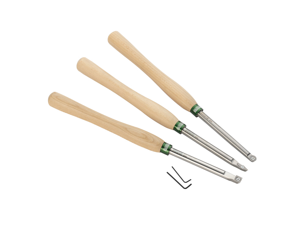 Il Set di scalpelli da tornitura in metallo duro (carbide) Record Power da 3 pezzi è progettato per rendere la tornitura del legno più semplice, pulita ed efficace, eliminando la necessità di affilatura e riducendo radicalmente la curva di apprendimento rispetto agli scalpelli tradizionali in HSS.