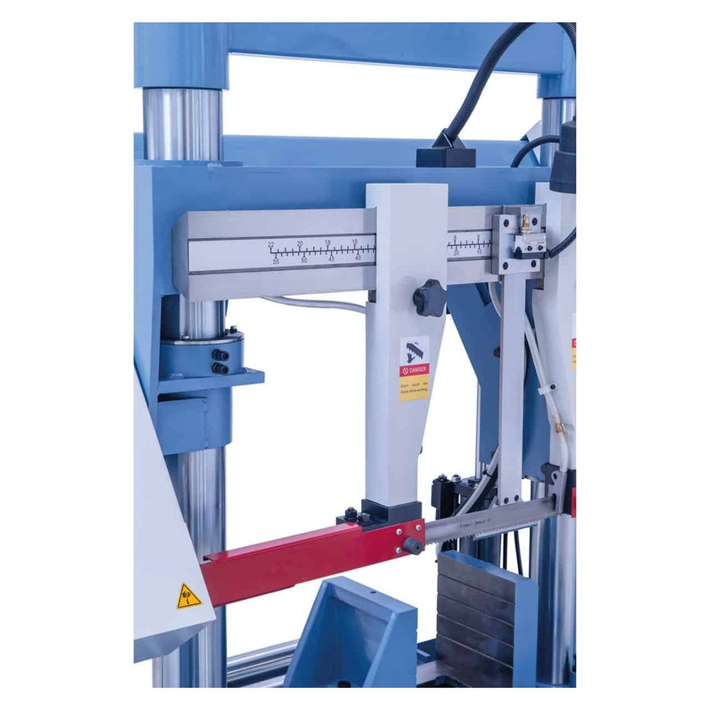 • Morsetto idraulico per una facile serratura del pezzo: Il morsetto idraulico consente una facile e sicura serratura del pezzo durante il taglio. Inoltre, l'aggiunta di una manovella per la regolazione fine permette una precisione ancora maggiore nel posizionamento del materiale.
