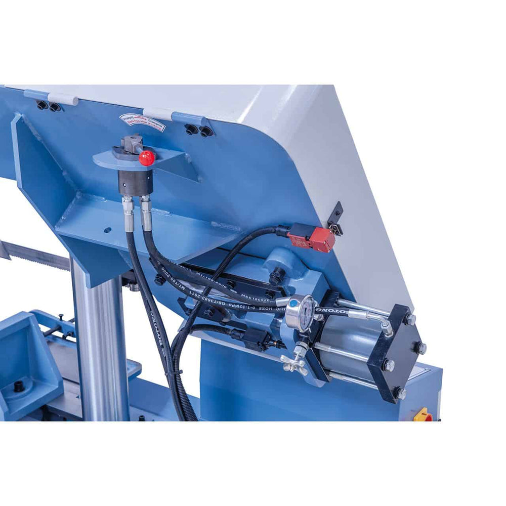 • Dotato di serie di tensionamento idraulico della lama sega: Il tensionamento idraulico della lama sega è incluso di serie, garantendo una tensione ottimale della lama per risultati di taglio migliori e una maggiore durata della lama stessa.