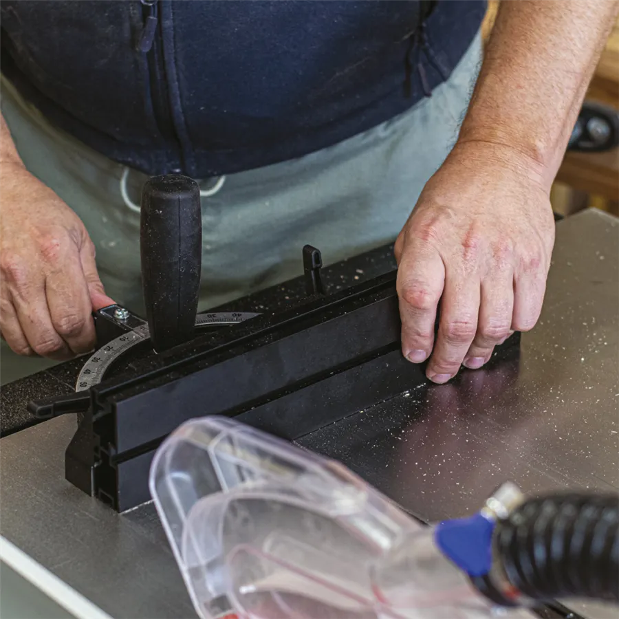 La guida parallela della Fusion 2 scorre fluidamente, si blocca in posizione con precisione e include un profilo ruotabile per facilitare i tagli di pezzi sottili.