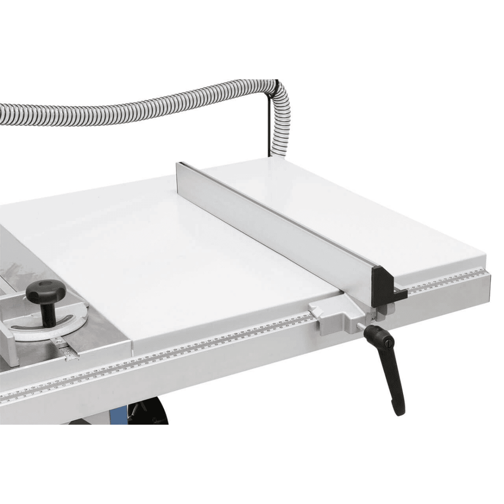 • Piano in ghisa grigia con cave a T per tagli precisi a sinistra e destra della lama