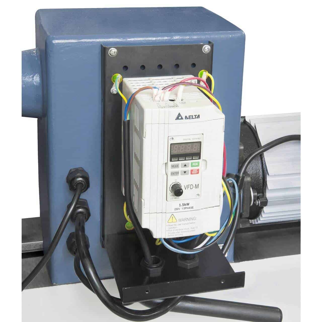L'inverter Delta consente una regolazione continua della velocità, garantendo coppia costante anche a basse velocità e maggiore precisione nella lavorazione di diversi tipi di legno.